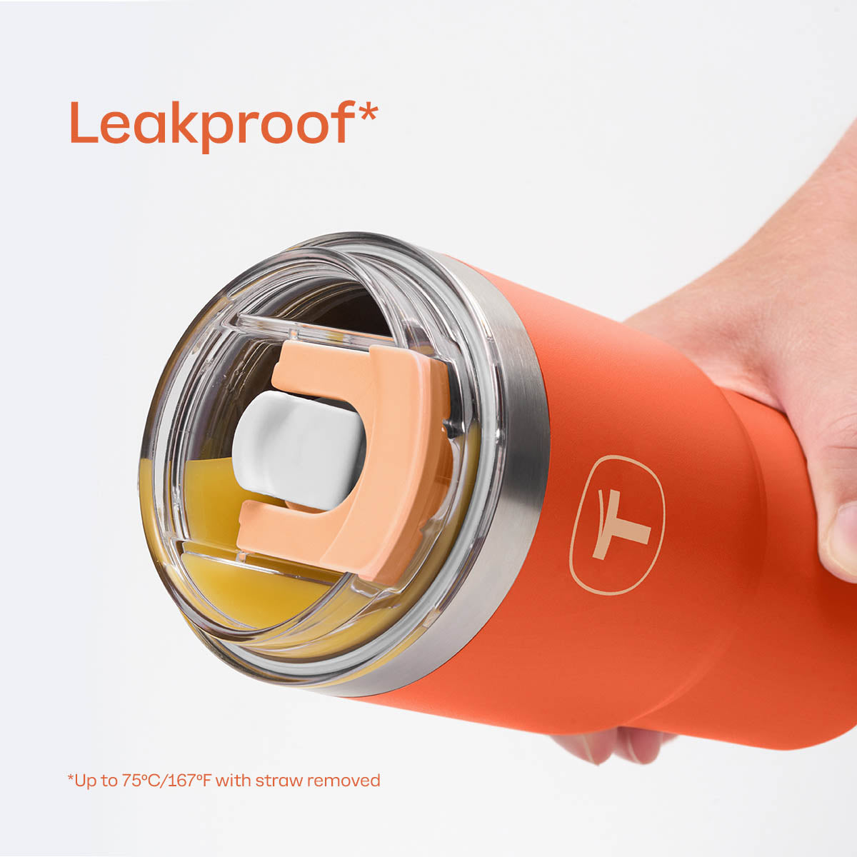 Avoid use with drinks over 167°F/75°C when the lid is closed to prevent leaks and burn injuries. Hotter liquids can be used without the lid.