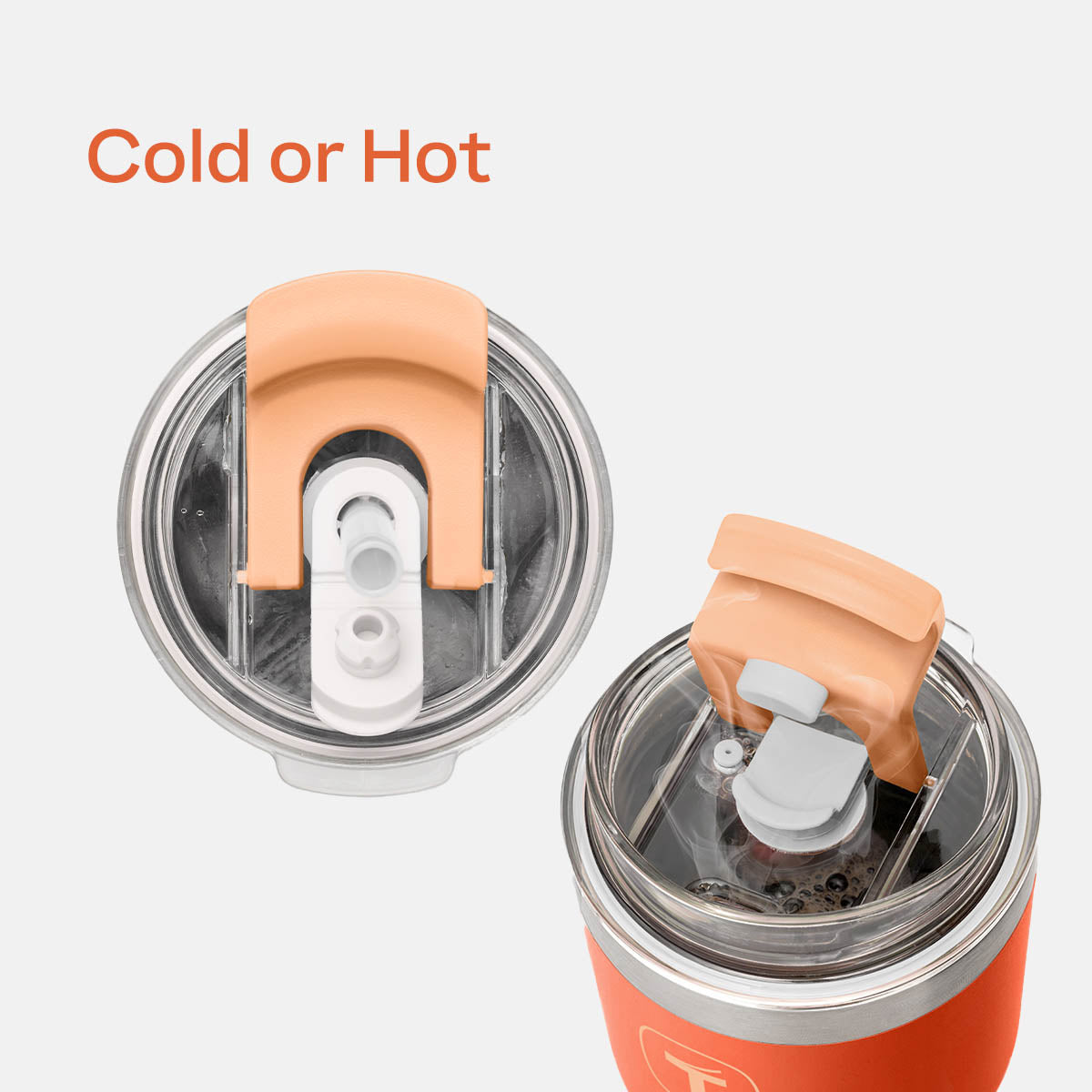 • Straw in or spout open: For cold drinks, pop the straw in the 2-in-1 lid. For hot beverages, flip the lid to sip from the spout.