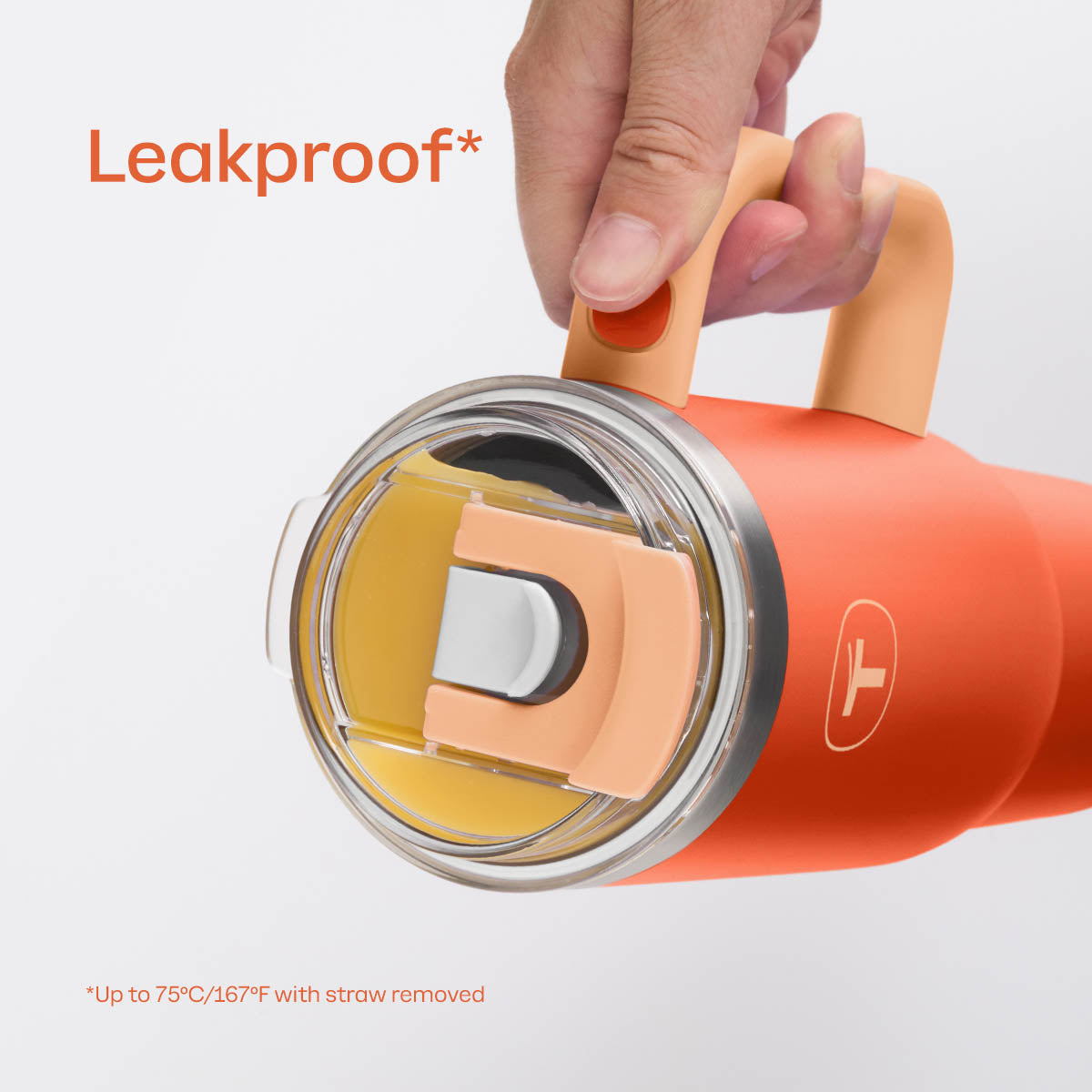 Want to bring your usual two cups of coffee on the go in one container? Trying to hit those daily hydration recs from your desk? The 37-oz big T is here to help. With its leakproof* lid, double-walled design, and an ergonomic handle on the large size (did we mention the cute colors?), big T checks every one of your beverage boxes: working hard to keep your drinks secure and ensure they stay hot or cold for hours on end—everywhere you are. Functional and fun? You heard it here first: big T is a big win.