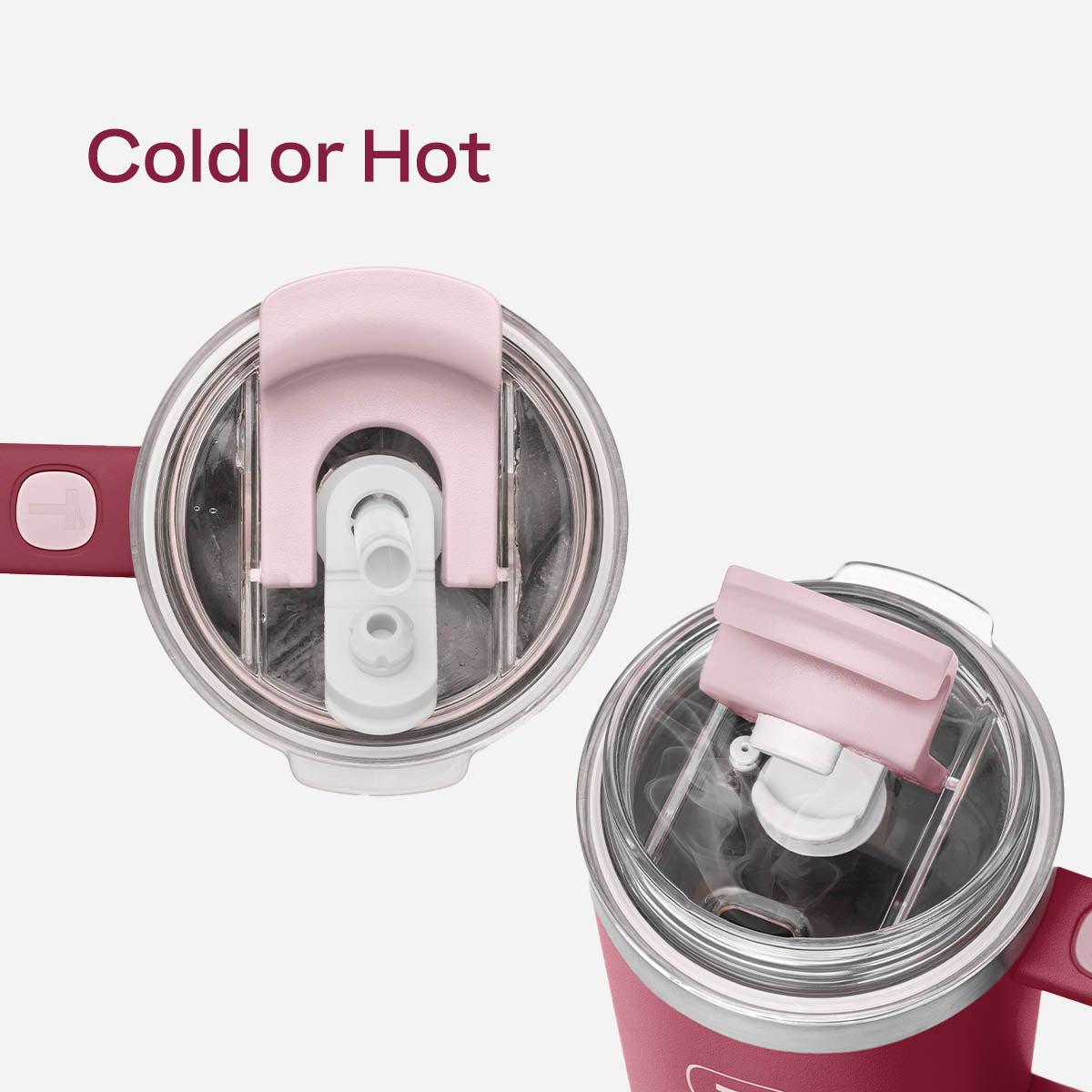 • Straw in or spout open: For cold drinks, pop the straw in the 2-in-1 lid. For hot beverages, flip the lid to sip from the spout.